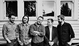 Dolorean is an American rock band based in Portland, Oregon. Their current line-up is Al James, guitar/vocals, Jay Clarke, organ/piano,[1] Ben Nugent, drums/percussion/vocals, James Adair, bass, and Jon Neufeld, guitar.[2] They have released four studio albums. Their most recent, The Unfazed, reached No. 41 on the Top Heatseekers chart.[3] The group has worked with Portland area musicians such as Jay Clarke who records with Knitting Factory Records under the moniker Ash Black Bufflo,[4] and Emil Amos who records on Partisan Records under the moniker Holy Sons.[5]