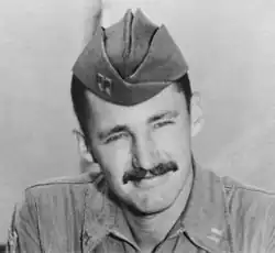 In February 1952, Overton joined the 8th Fighter-Bomber Squadron, 49th Fighter-Bomber Wing. As many of the other pilots deploying with Overton were from the Air National Guard, Overton was the most experienced jet aircraft pilot among them. Because of this, he was made a flight leader and the assistant Operations Officer of the squadron.[5] The unit flew out of Taegu (K-2) and its missions consisted primarily of close air support and interdiction missions in support of United Nations ground forces. In this time, Overton also took assignments as a forward air controller and directed air support missions to troops on the front lines. Overton spent some of this time on the USS Valley Forge (CV-45) to assist US Navy pilots with their own close air support doctrine.[3]