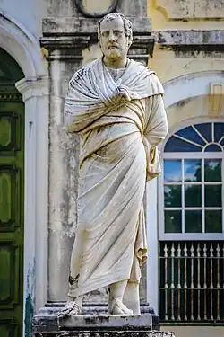 Of special note are the numerous ceramic urns and statues produced by the Santo António do Vale Factory (Portuguese: Fábrica de Santo António do Vale) in Lisbon, a much-desired product in 19th century Brazil. A smaller number of Santo Antônio do Porto pieces can be found in Cachoeira and Santo Amaro, but the collection at the Dom Pedro II Home is the largest in Bahia. The fountain at the entrance on Avenida Luiz Tarquínio is original to the structure.[2][4]