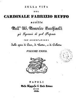 Domenico Sacchinelli (18 April 1766 – 6 July 1844) was an abbot of the Catholic Church. He is best known for having followed and helped Fabrizio Ruffo and the Sanfedisti army to restore the Kingdom of Naples and the Bourbon dynasty, after the short-lived Parthenopean Republic (1799). In 1836, after a few decades, he published his memoirs of that period, titled Memorie storiche sulla vita del cardinale Fabrizio Ruffo.[1]