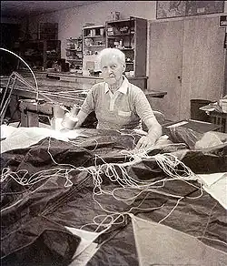 In 1964, he filed a patent titled "Multi-cell Wing Type Aerial Device" This would become key to paragliding, sky diving, powered paragliding, landboarding, kite surfing and cargo-ship kite tugging.[6]