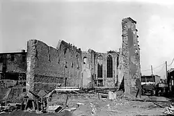 On 18 March 1944 the then secularised church was destroyed during the Allied bombing of Frankfurt.[9] Its ruins were removed in the postwar period, except for the remnants of the choir and north wall.