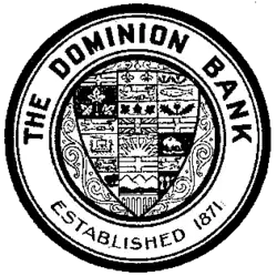 The Dominion Bank was a Canadian bank that was chartered in 1869 and based in Toronto, Ontario.[1] On February 1, 1955, it merged with the Bank of Toronto to form the Toronto-Dominion Bank.