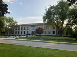 By the late 1940s, the companies offices had become overcrowded. In the fall of 1946, Upton visited the 56-acre Forsyth farm adjacent the Westmount Golf and Country Club to inspect it as a possible site to build a new head office, and learned he could purchase it for $75,000. The following April, Upton visited the site with several company officers, then a month later brought Norman Dryden of the planning firm Dryden, Smith & Head.[14] In 1947, Dominion acquired the farm property. The company kept six acres for itself to build a new head office, and sub-divided the remaining property into 172 residential lots.[15] A building committee was struck in 1950 and Mathers and Haldenby of Toronto were hired as architects. By 1953, all the residential lots had been sold, offsetting the land purchase and building construction costs for the company. In May 1953 the company announced that construction was to begin before the end of the year,[16] and the building contract was awarded on 30 July 1953 to Ball Brothers Construction Limited. The cornerstone was laid by Ford Kumpf on 21 February 1954. The ceremony was chaired by president Frowde Seagram, who related to the crowd, "this building surely is an indication of progress and of faith in our country and in the principles upon which the very structure of life insurance has been raised."[17] The office opened on 13 December of that year.[18]