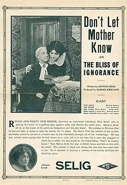 Don't Let Mother Know, also The Bliss of Ignorance is a 1913 American silent film drama produced by Hardee Kirkland. The film stars Maxwell Sargent, Carl Winterhoff, Louise Kelly, Adrienne Kroell and Jack Jonson. The film status is uncertain but a release flier survives which is now at the Margaret Herrick Library at the Academy of Motion Pictures Arts and Sciences.