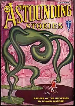 Donald Albert Wandrei (20 April 1908 – 15 October 1987)[1] was an American science fiction, fantasy and weird fiction writer, poet and editor. He was the older brother of science fiction writer and artist Howard Wandrei. He had fourteen stories in Weird Tales, another sixteen in Astounding Stories, plus a few in other magazines including Esquire. Wandrei was the co-founder (with August Derleth) of the prestigious fantasy/horror publishing house Arkham House.