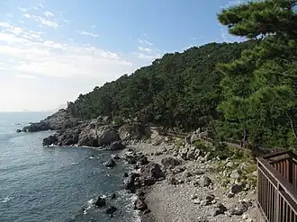 Dongbaekseom (Korean: 동백섬; lit. camellia island) is a former island in U-dong, Busan, South Korea. It is located on the west end of the Haeundae Beach. It was designated as a monument of Busan on March 9, 1999.[1]