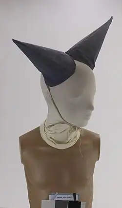 The donkey acquired a prominent symbolic place from the Middle Ages, like other exotic animals such as the lion, by becoming, especially in medieval encyclopedias, a symbol of stupidity and foolishness.[4][5] According to medievalist and art historian Michel Pastoureau, the existence of the dunce cap is attested as early as the 12th century in cathedral schools.[5] During the medieval period, donkey skin was utilized to create parchment, and various parchment festivals were held on these occasions, particularly at the Abbey of Saint-Denis.[6]
