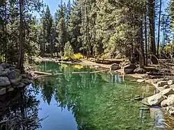 A significant tributary to Donner Creek is Cold Creek, which drains Coldstream Canyon, a 12.5 square mile area south of Donner Lake, in and near Truckee.[2]