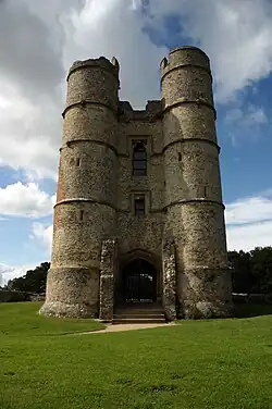 This family later fell out with the Tudor monarchs, and the castle became a royal property.[4] In 1514 it was given to Charles Brandon, 1st Duke of Suffolk. Though Brandon appears to have stayed at the Donnington Castle in 1516, by the time the castle and manor returned to the Crown in 1535 the structure was in a state of decay.[5] King Henry VIII, Edward VI, and Queen Elizabeth I visited Donnington Castle, in 1539, 1552, and 1568 respectively.[4][6]