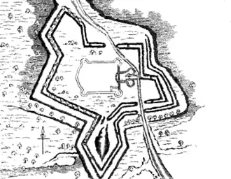 In 1590 Elizabeth I granted keepership to Elizabeth Cooke (Lady Russell), the first woman to hold such a title in England.[7] In 1600, Elizabeth I gave the castle and surrounding manor to Charles Howard, 1st Earl of Nottingham.[5] Howard took possession in September 1603 and Russell disputed his rights.[8] By the time the English Civil War broke out in 1643, the castle was owned by the Parliamentarian John Packer family but after the First Battle of Newbury[9] it was taken for the King, Charles I, and held by Sir John Boys. They quickly enhanced the castle's defences by adding earthworks in a star shape to provide gun emplacements.[4] Parliamentarians laid siege to the castle in October 1644 and the garrison held out for 18 months. With permission from the king, Boys surrendered the castle in April 1646 and was allowed to leave with all his men.[4][5]