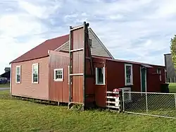 Donovan ran the store until the 1950s, selling it to Keith (Robbie) Robertson of Whataroa who ran the store part–time until 1965.[2] In 1987 the building was bequeathed to the Historic Places Trust by Robertson. The Trust passed the building to the Department of Conservation (DOC) in 1988.[1][4] In 1990 the Trust gave the store a Category 1 listing, which designated it as a significant building meriting preservation.[1] It fell into disrepair but the local community decided in the 1990s to restore it to a usable building, with a library premises being one of the possible uses and in 1994 DOC began a five-year restoration programme.[4][5] The Ōkārito Community Association contributed $100,000 towards the renovation.[3] It owns and maintains the hall in partnership with DOC.[3]