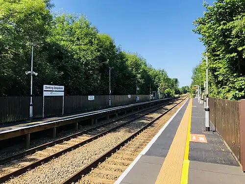 ![]() The platforms at Dorking Deepdene, looking west | |||||