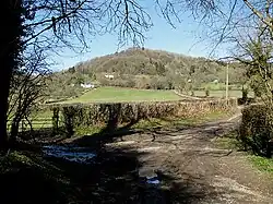 At the south of the parish near the border with Mordiford and on a hill between Prior's Court Wood and Cockshoot Wood, are the earthwork remains of Backbury Camp (called Ethelbert's Camp before 1926), an Iron Age promontory hillfort with a triple rampart and defensive ditches, covering an area of 8 acres (30,000 m2).[11][45]