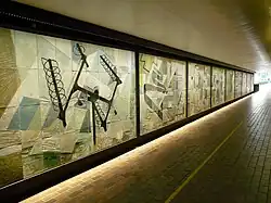 In January 2013, the City of London Corporation agreed to take ownership of the murals, and in September 2013 these were moved to a permanent location in a publicly accessible part of the Barbican Estate.[11] They are displayed in their original sequence within an enclosed section of the Barbican Highwalk between Speed House and the Barbican Centre.[12][13]
