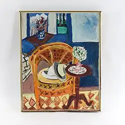 An early painting from this period, "Portrait in Light" (shown at left), has a greater degree of abstraction than a painting, "Interior Still Life" (shown at right) made only three years before her death. The latter work seems to show an influence of Matisse that critics saw in her work from the time she spent studying at Académie de la Grande Chaumière in the late 1920s.[2][31] From its inception in the 1930s through to its culmination in the late paintings, Eisner's output maintained a consistency that a gallerist summarized as derived from European modernism but also grounded in American painting of her own generation and the generation before her.[3]