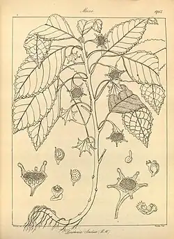 - ^ Zhang, Shu-dong; Soltis, Douglas E.; Yang, Yang; Li, De-zhu; Yi, Ting-shuang (2011). "Multi-gene analysis provides a well-supported phylogeny of Rosales". Molecular Phylogenetics and Evolution. 60 (1): 21–28. Bibcode:2011MolPE..60...21Z. doi:10.1016/j.ympev.2011.04.008. ISSN 1055-7903. PMID 21540119.