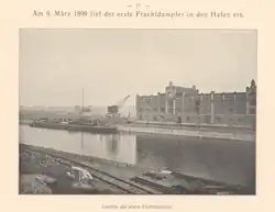 For transporing general cargo it did make sense to give barges their own propulsion. On 9 March 1899, the steamboat (Frachtdampfer) Dortmund entered the new harbor of Dortmund from downstream.[10]