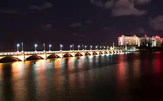 The Dos Hermanos Bridge (Spanish: Puente Dos Hermanos) is a bridge in San Juan, the capital municipality of Puerto Rico. Crossing over the Condado Lagoon, it connects the district of Condado in the barrio of Santurce with the land entrance to San Juan Islet, which is where the historic quarter of Old San Juan is located. The bridge was designed and built by brothers Hernand and Sosthenes Behn, opening in May 22, 1910.[1]