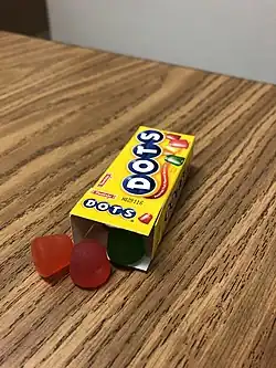 Dots, or Mason Dots (trademarked DOTS), is an American brand of gum drops marketed by Tootsie Roll Industries. According to advertisements, more than four billion Dots are produced from the Tootsie Roll Industries Chicago plant each year.[1] Dots are vegan, gluten-free, nut-free, peanut-free, halal, and kosher. They come in various flavors and varieties.