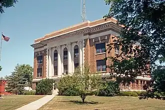 The courthouse, built in 1927, is a Classical Revival building designed by Sioux Falls architects Perkins & McWayne. It is a three-story red brick building, 81.2 by 61.2 feet (24.7 m × 18.7 m) in plan, with brick laid in Flemish bond.[2]