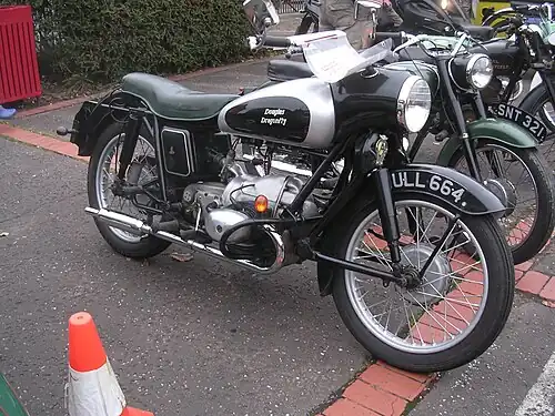 The Douglas Dragonfly is a motorcycle designed and built by Douglas motorcycles in Bristol. The last motorcycle produced by the company, the 1955 Dragonfly was an all-new motorcycle built to use an improved version of an existing engine. Despite its riding comfort, which was "equal to a car's", it did not sell well, and only 1,457 Dragonfly motorcycles were produced before the company was taken over and production ended in 1957.[1][2] Very few Douglas motorcycles survive today.