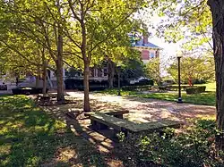 Other buildings housed classrooms for education, music, and theater classes, including a small theater space in the Music and Arts building. Art created by students and local artists was displayed in the Anthony Giordano Gallery.[22] The Oakdale Residence Hall accommodated up to 207 undergraduate students, with a study lounge available to all residents 24 hours a day. Adjacent to the Residence Hall was the Curtin Student Center, which contained the campus gym. Upstairs was the Lion's Den, a place for students to unwind and socialize.[23]