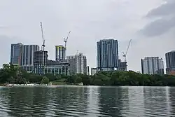 Downtown Austin is the central business district of Austin, Texas, United States. The area of the district is bound by Lamar Boulevard to the west, Martin Luther King Jr. Boulevard to the north, Interstate 35 to the east, and Lady Bird Lake to the south.[1][2]