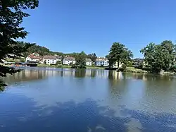 Several fishponds are built on the upper and middle course of the river.[2] The largest of them is Osika with an area of about 67 ha (170 acres).[6] A notable fishpond is Herrensee, located inside the built-up area of Litschau. It has an area of 24 ha (59 acres).[7]