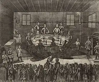 All Drabants had an officer ranking:[33] The rank of the captain lieutenant was made equal to that of a major general, admiral or Landshövding (governor); the Drabant-lieutenants had a rank comparable to a colonel; the Drabant-corporals had a rank next to a major; the adjutant and quartermaster had a rank equal to that of a lieutenant colonel; the commoners had a rank similar to that of a ryttmästare (captain) in the Life Regiment of Horse, or a captain in the Life Regiment Dragoons.[16][28] Evidently, only the officers from other regiments could be commended to the corps, as long as they were experienced, capable and brave.[34][35] These changes made the corps "unlike anything else seen in Europe", according to Jöran Nordberg.[14][36]