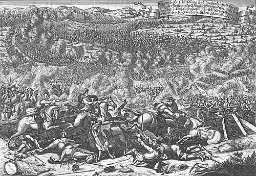 The corps counted 147 men,[102] and was formed into one squadron led by Carl Gustaf Wrangel. It fought in the first line (which was commanded by Arvid Horn) on the right Swedish wing, under Carl Gustav Rehnskiöld.[139] To circumvent the advantageous Saxon position, Charles started wheeling his line to the left—until the Polish Crown Army suddenly appeared on the Saxon flank, forcing him to halt.[140] Instead of awaiting an inevitable Saxon–Polish attack, Charles seized the initiative with his left-wing and marched straight at them. The Poles and the Saxon right were forced to retreat after a fierce struggle, while the Swedish center began traversing the morass between them and the Saxon infantry, preparing to attack.[141]
