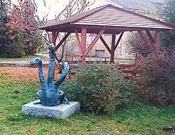 A pillar statue representing the Sacred Heart of Jesus is located in the central square. The statue bears the inscription, Sweet Heart of Jesus, bless our families. - (untranslated) Najsłodsze Serce Jezusa błogosław rodzinom naszym.