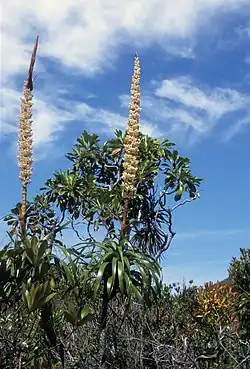 Dracophyllum verticillatum is a species of shrub or small tree endemic to New Caledonia. It was first described by Jacques Labillardière in 1800 and gets the specific epithet verticillatum for its flowers growing on verticillasters. In the heath family Ericaceae, it inhabits exposed plains and gentle mountain slopes and reaches a height of 0.2–7 m tall.[1]