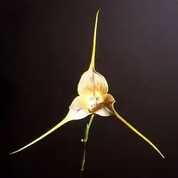 Dracula gigas is a species of orchid. It is sometimes called the monkey orchid because it resembles the face of a monkey. This common name is shared with Orchis simia.