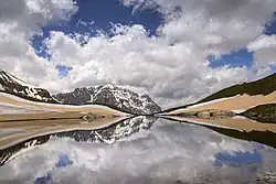 The second lake resides on the west slope of Smolikas, the second highest mountain of Greece. Smolikas lies a few kilometers north of Tymfi, only separated by the gorge of the river Aoos. This lake is also inhabited by alpine newt.