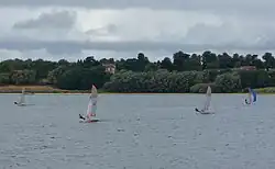 Draycote Water has a country park on its southern shore, which extends across 21 acres (8.5 ha). The park has facilities for bird watching and fishing, as well as several nature trails and a visitor centre. A track around the perimeter allows cyclists and walkers to circumnavigate the reservoir, a total distance of 5 miles (8 km).[11] The Draycote Water Sailing Club is situated on the shoreline and offers dinghy sailing and windsurfing as well as races.[12]