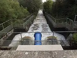 Draycote Water was built between 1967 and 1969, to cope with rising demand in eastern and southern Warwickshire, and opened in 1970.[2] In early 2012 the reservoir had to be closed temporarily, as record-low rainfall during the winter months had caused its level to reduce to less than 50% of capacity.[6] Severn Trent responded by reversing the flow of water in an existing pipeline between Draycote Water and Welches Meadow Reservoir adjacent to the River Leam in Leamington Spa.[7] This development required a short length of new pipe at the Draycote end and a new pump at Leamington.