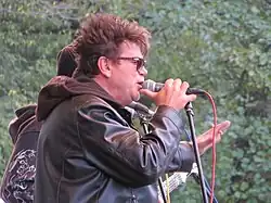 In 1992, as the Yugoslav War advanced into Sarajevo, the band ended their activity.[5] Žerić spent two years under the Army of Republika Srpska siege of Sarajevo doing humanitarian work and charity concerts. In 1994, he emigrated to Zagreb, where he reformed Crvena Jabuka with Darko Jelčić and multi-instrumentalist Nikša Bratoš.[5] With principal songwriter Arslanagić out of the band, the group started to coopeerate with external songwriters, renewing their popularity in former Yugoslav republics.[5] With the departure of Jelčić in 2017, Žerić has remained the only original member of the group.[6]