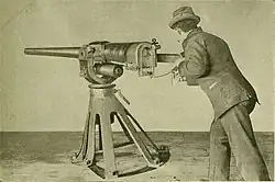 Driggs-Schroeder weapons included 1-pounder,[5] 3-pounder (Navy Marks 2 and 3),[6][7] and 6-pounder (Navy Marks 6 and 8)[8][9] naval guns.[10] All were rapid-firing, i.e. they used brass cartridges with fixed projectiles. They were among numerous models of these guns equipped on US Navy ships of the 1890s. Unlike some other manufacturers, Driggs-Schroeder did not design fully automatic 1-pounder and 3-pounder guns. Most Driggs-Schroeder weapons were manufactured by the American Ordnance Company in Bridgeport, Connecticut,[11] with some manufactured by Driggs Ordnance Company.[12][13][14][15]