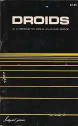 Droids is a science-fiction robot role-playing game.[1] The rules cover construction of droids (i.e., character creation), combat, droid society, encounters, and scenarios.[1] The player characters are robots trying to survive after humanity destroyed their world.[1]