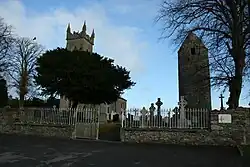 The village was home to a monastery for hundreds of years, which was reputedly associated with Saint Patrick.[4] The first bishop of Dromiskin was Lughaidh,[5] son of Aengus mac Nadfraoch the first Christian king of Munster. St Patrick reputedly pierced Aengus's foot with his pastoral staff during the baptism.[6]