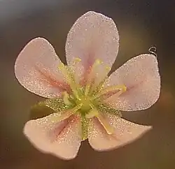 Drosera occidentalis is a species in the carnivorous plant family Droseraceae, and native only to Western Australia. Its range is limited to wetlands between Perth and Pinjarra. It is noteworthy for having the smallest leaf-blades (laminae) of any Drosera, being only 1/25th inch (one millimeter) in diameter.[1]