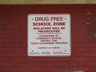 United States Federal law and many state and local laws increase penalties for illegal drug-related activities in drug-free school zones.[1][2] The penalties vary from jurisdiction to jurisdiction in terms of whether they stand alone as separate offenses or serve as a sentencing enhancement, and in terms of the defenses available.[3]