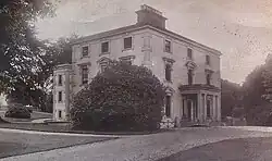 The castle was replaced around 1800 by Drumbaragh House, a four-square, three-story Georgian featuring a prominent chimneystack that remains today.[13] It was erected for Henry Woodward, son of Benjamin and Esther, who married Sarah-Catherine Wade of Clonabreany. Their second son, Robert Woodward (1805-1864), succeeded in 1838 until his death when the property went to the Landed Estates Court.