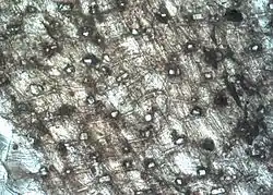 - ^ Lersten NR, Horner HT (2006). "Crystal macropattern development in Prunus serotina (Rosaceae, Prunoideae) leaves". Ann. Bot. 97 (5): 723–729. doi:10.1093/aob/mcl036. PMC 2803424. PMID 16513655.
