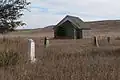Religious services in the area were begun in the early 1900s. A Sunday school was organized in 1909. In 1910 tent meetings at Wells, Nebraska were started. Plans for the "Dry Valley Union Congregational Church" were set in 1910, land was donated by Robert Boyer, and the cornerstone was laid on June 3, 1911. It was built of concrete blocks by E.L. Holland. The membership withdrew from the Congregational denomination in 1924; a Methodist church held funerals and selected other services thereafter. The church was not used for services from 1958 until 1986, when a group of women led a restoration effort.[2]