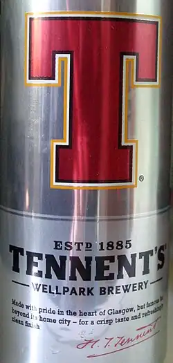 It was founded in 1740 on the bank of the Molendinar Burn by Hugh and Robert Tennent.[1] It is owned by C&C Group plc, which purchased the Tennent Caledonian Breweries subsidiary in 2009,[2] from Belgian brewing company Anheuser-Busch InBev (formerly known as InBev).[3]