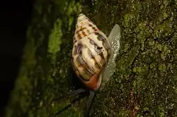 Drymaeus magus, commonly known as the magician snail, is a species of tropical air-breathing land snail, a pulmonate gastropod mollusc in the family Bulimulidae found in regions of southeastern Brazil. For nearly two centuries, this species was rarely revisited in scientific literature and was mysteriously absent from scientific collections, often being confused with other members of the genus Drymaeus. Recent studies have revealed that, although it has been poorly documented in the literature, the species is more common than previously thought.[2]