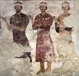 A fresco depicting the Charelidze, ducal family of Racha, Church of Crucifixion of Sori, Georgia