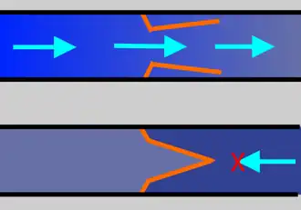 A duckbill valve is a check valve, usually manufactured from rubber or synthetic elastomer, and has two or more flaps, usually shaped like the beak of a duck.[1] It is commonly used in medical applications to prevent contamination due to backflow.